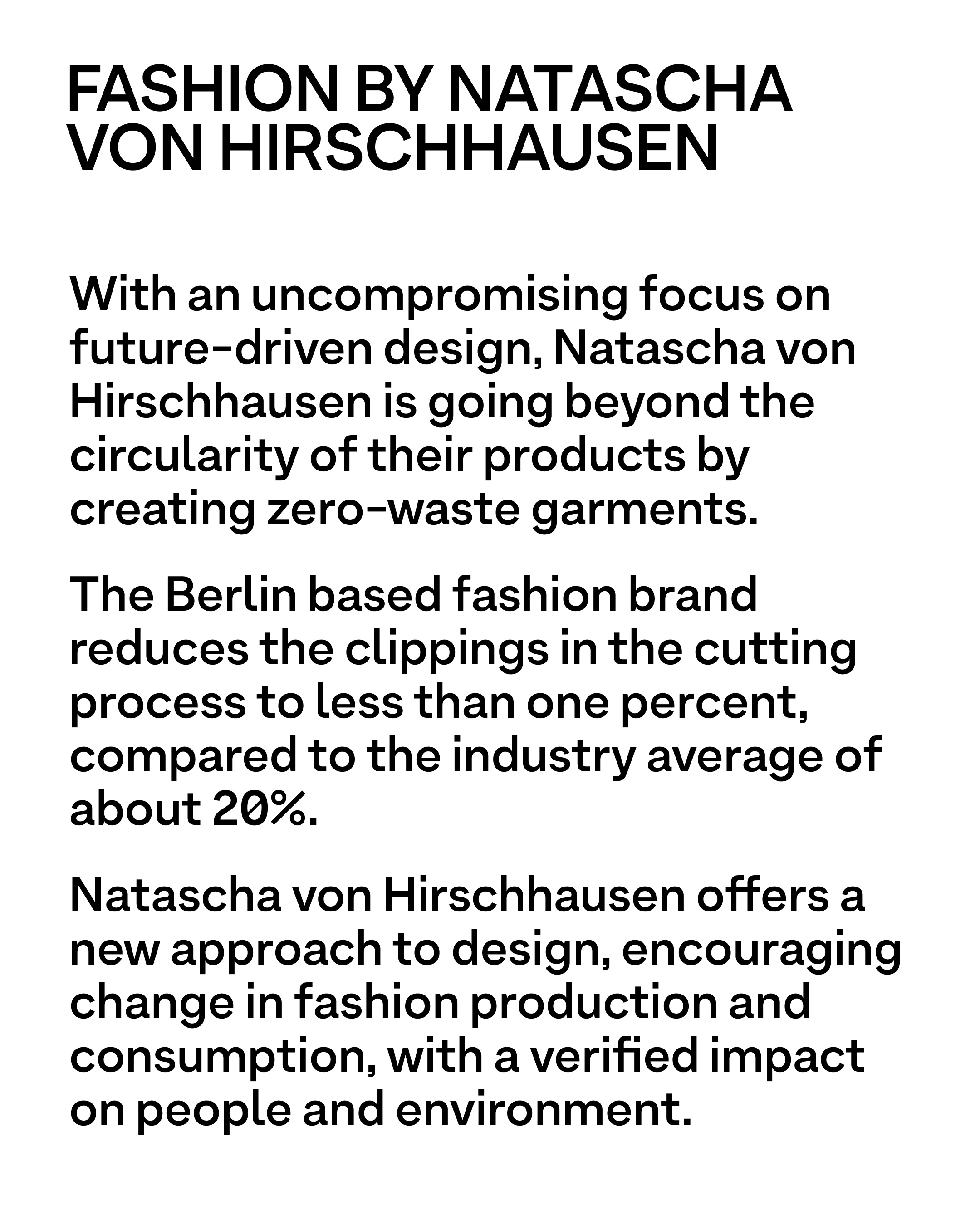 As part of Fashion Revolution Week, this month’s Feierabend highlights Designer Natascha von Hirschhausen, whose work has long been driven by a commitment to resource-efficient design and fair production.