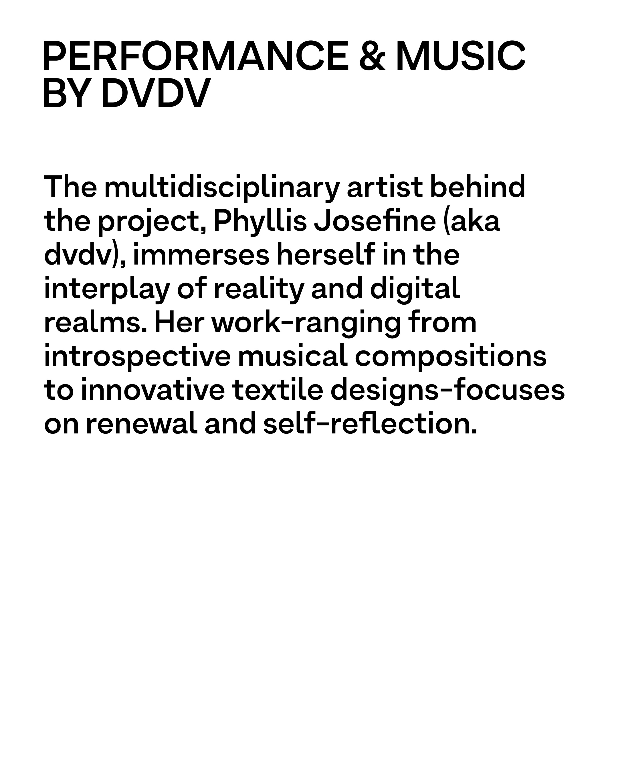 The evening will feature a performance and sounds by Phyllis Josefine aka dvdv.