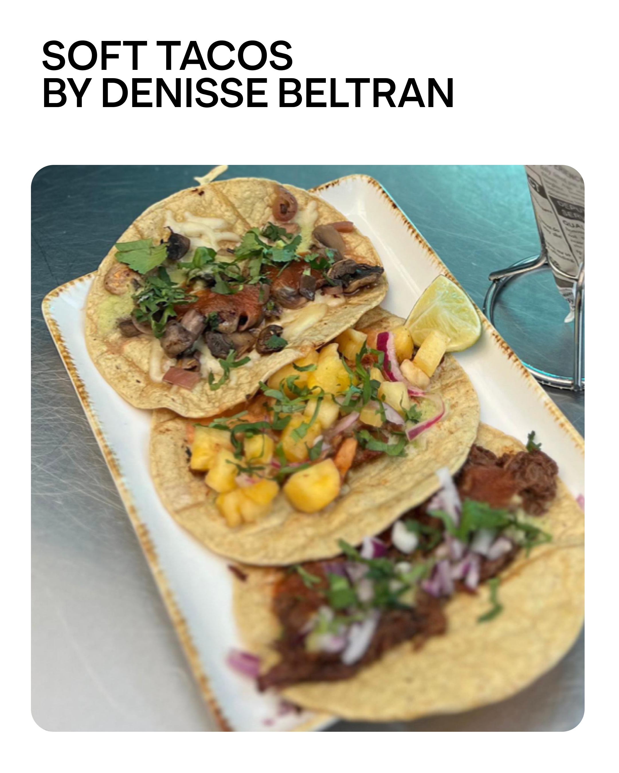 From 5:30 PM Denisse Beltran is going to serve soft tacos.