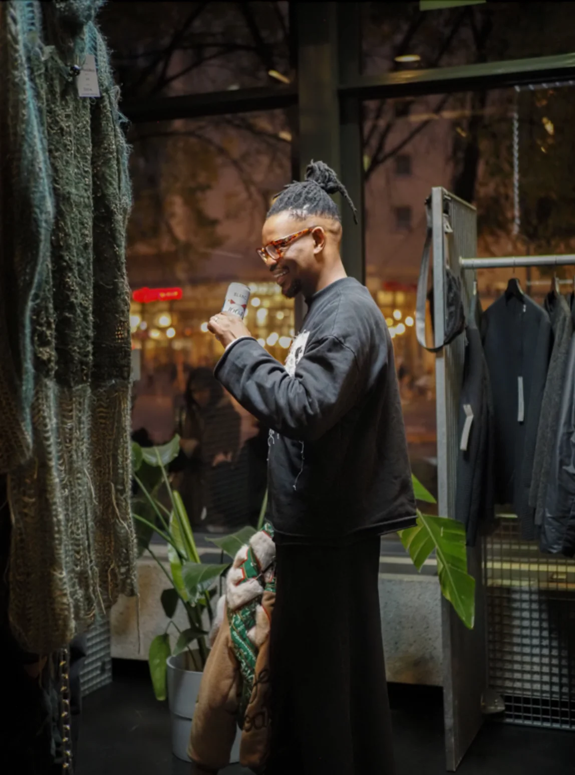 Discover the latest winter styles by Berlin-based designer Dennis Chuene. His label blends bold silhouettes with deep symbolism, drawing inspiration from scarification, emotions, string theory, and Japanese culture. Each piece is rooted in authenticity and raw craftsmanship, telling a story of identity and artistic expression.