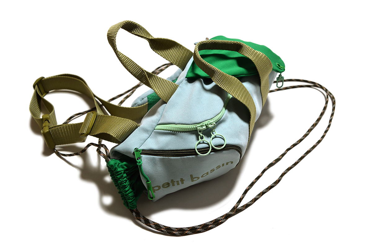 The brand operates through three complementary lines. Grand Bassin is the couture line, presenting annual collections that examine different sports and their cultural meanings through interactive luxury pieces. Petit Bassin is the accessories line, merging sport essentials with the brand’s modular design language into compact, functional bags. Pediluve reimagines sports equipment as functional and artistic home objects.