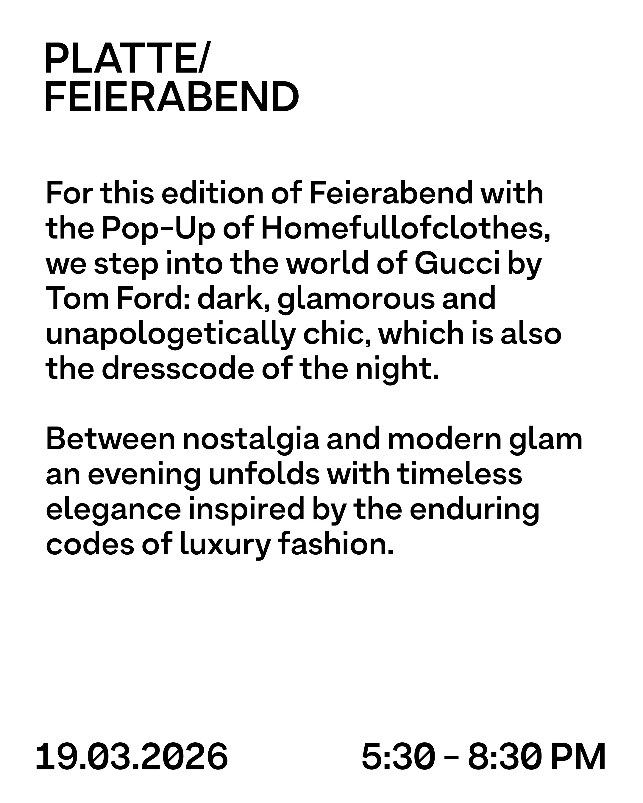 For this edition of Feierabend with the Pop-Up of Homefullofclothes, we step into the world of Gucci by Tom Ford: dark, glamorous and unapologetically chic.